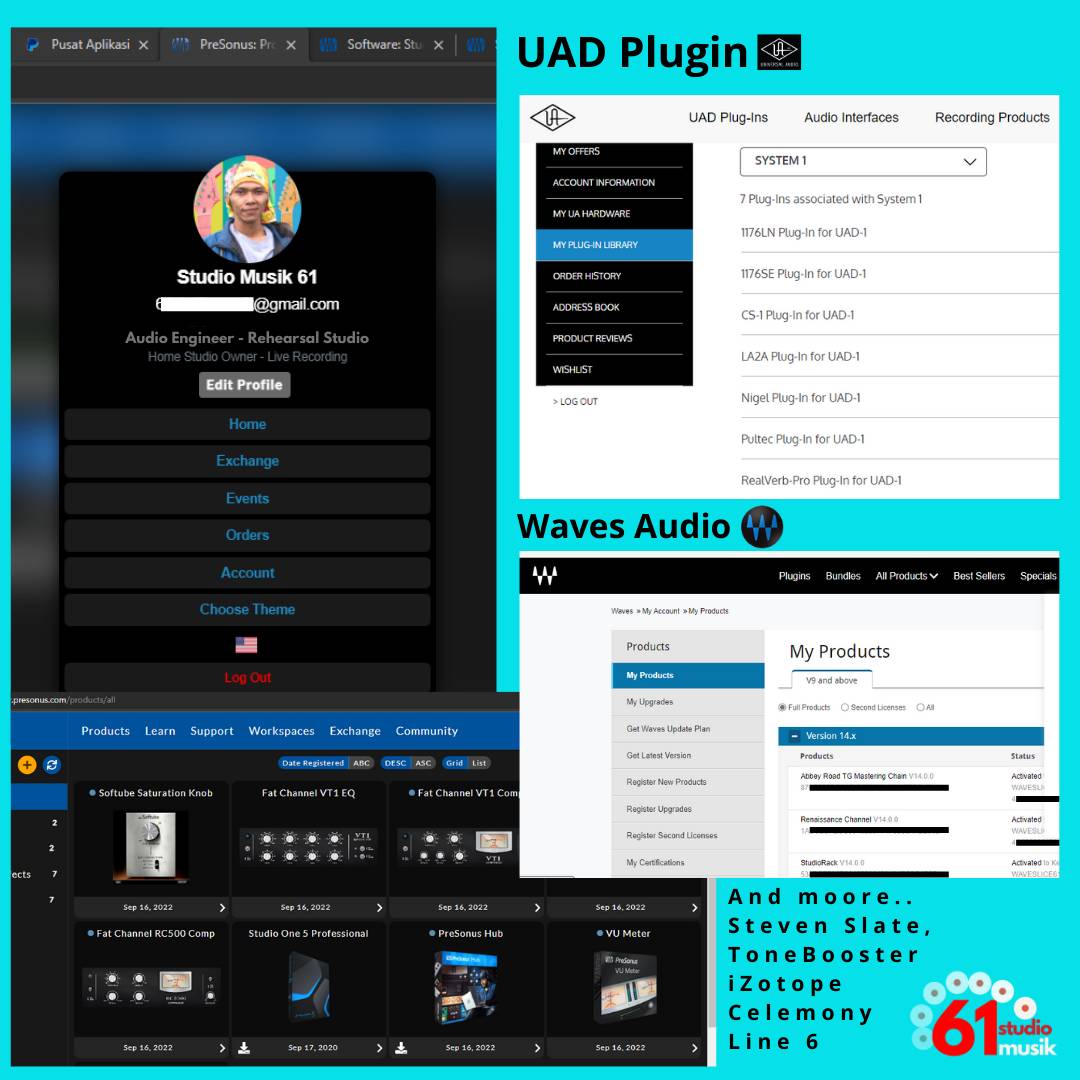 Studio One | Reaper | Steven Slate | Waves Audio | Line 6 | ToneBooster | and many moore..